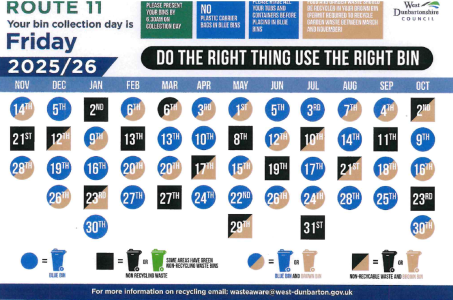 West Dunbartonshire Council have provided the bin uplift timetable, as shown here.